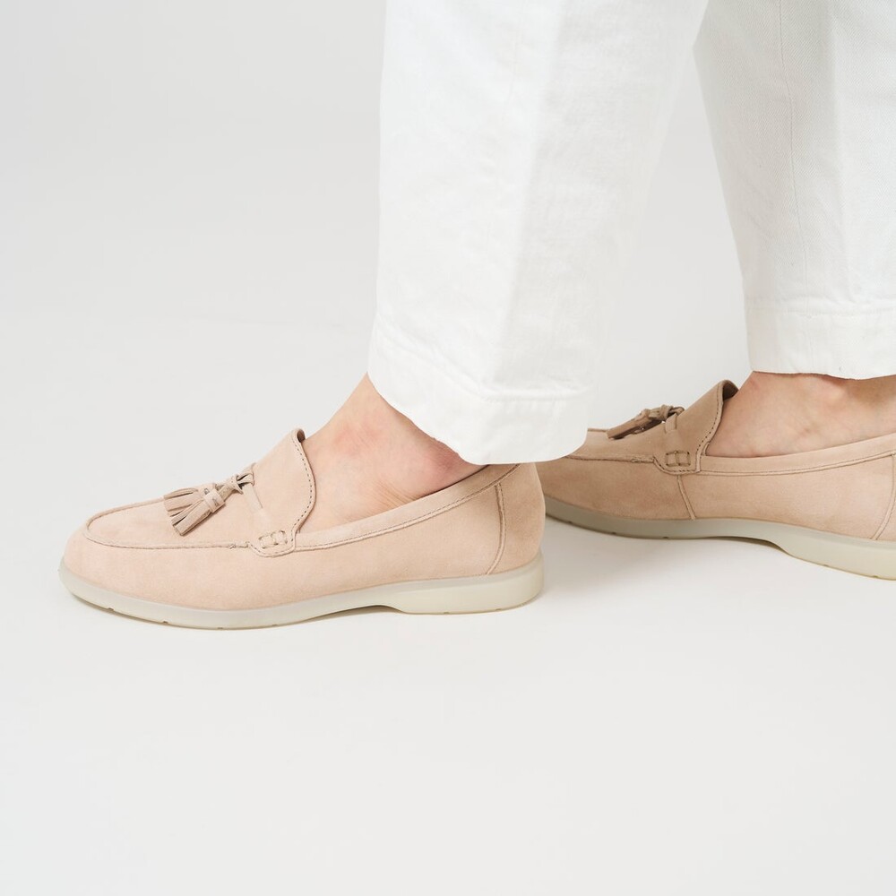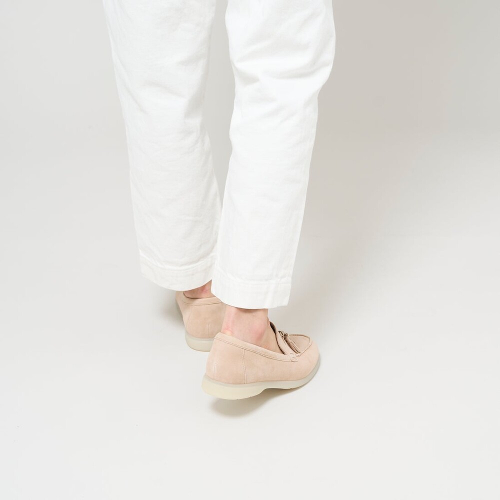 로퍼 플랫 스타일을 꾸준히 이어가는 Narini Edge는 여행이나 일상 외출에 딱 어울리는 슬립온 슈즈입니다. 부드러운 샌드 컬러 스웨이드로 제작되어 어떤 스타일에도 자연스럽게 매치할 수 있으며, 탈부착 가능한 컨투어 쿠션 풋베드와 유연한 아웃솔로 하루 종일 편안한 착용감을 제공합니다.